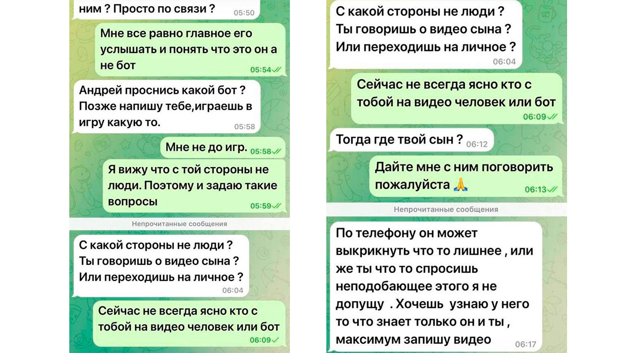Судя по сообщениям, отец сомневается в том, что переписывается не с ботами. Предполагается, что видео ребенка также могли подделать.