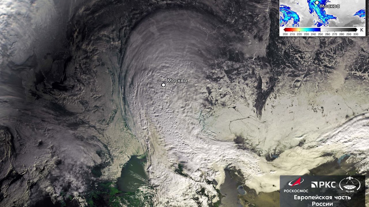 Опубликован спутниковый снимок снежного циклона «Валли» над Москвой